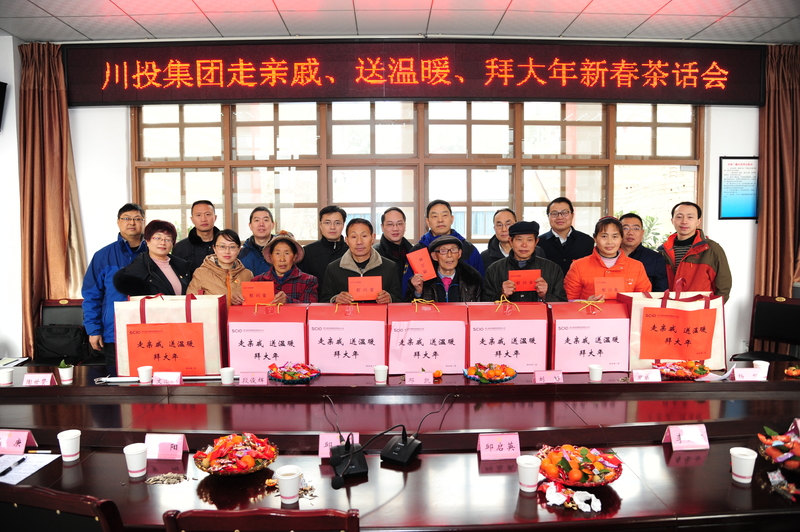 茶话会结束后,邓凯副书记代表集团公司党委向参会的贫困户送上了象征吉祥喜庆的“红包”、大礼包、餐具等新春慰问礼品并合影留念。随后,邓书记一行驱车前往因行动不便未能参加茶话会的罗洪俊、罗永成两位老人家中,嘘寒问暖、实地了解他们的生活情况和需要帮助解决的具体困难,给他们送上节日的问候与祝福。两位老人表示,感谢党和政府,感谢川投集团的帮扶,使他们住上了好房子、过上了好日子,政策这么好,还是要靠自己的双手,把自己的日子过得更好,才对得起大家的帮助和关怀。