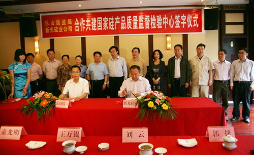 为加快推进国家硅产品质量监督检验中心建设,打造全国一流硅产品公共检验检测服务平台、全国一流硅产品标准制订(修订)平台,服务我市电子产品千亿产业园区建设,促进硅产业及光伏产业健康、可持续发展。在乐山市委、市政府的关心支持下,新光硅业公司与乐山市质量技术监督局达成共建“国家硅产品质量监督检验中心”的合作协议,签字仪式于6月1日在乐山举行。