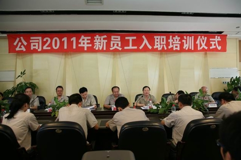 2011年8月22 日上午10点30分,公司在二号办公楼大会议室举行2011年引进新员工入职培训仪式,公司经营班子成员、专家、副总工程师兼生产制造部经理吴道荣、入职培训授课老师和人力资源部全体人员参加了仪式;仪式由公司纪委书记、公司工会主席余嘉乐主持。