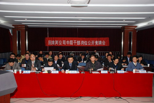 11月11日,田湾河公司中层干部岗位公开竞聘大会在电站现场208会议室召开,公司党委书记、总经理孙志祥,党委副书记、纪委书记、工会主席刘凤鸣,总工程师唐剑虹,副总经理、电厂厂长卢建奎,副总会计师杨利出席会议。竞聘考评组成员、职工代表和其他生产管理人员共50余人参加了会议,会议由刘凤鸣主持。