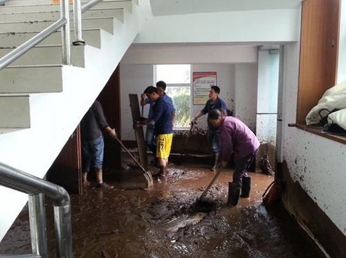 与此同时,受张昊委托,总经理助理熊宇在公司营地召集技术与安全部、发电部、设备检修与维护部、水工与水情部等相关部门和物业管理单位召开了“7.09山洪泥石流”抗洪抢险第一次会议。进一步明确了抗洪抢险期间的组织领导、协调机制、人员集中地点、抢险碰头会议制度等内容。重点强调了工作纪律,要求抢险期间务必注意人身安全,防止次生灾害的发生,在等待外部救援的同时尽量做到不等不靠,充分利用现有的人力、物力进行自救。随后,一台挖机、一台装载机进入营地开始清理工作,公司合作单位中铁十六局、子豪公司、兴达公司先后赶赴现场开展抢险救援。
