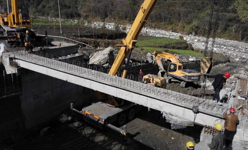吊装工作从6日上午开始,持续时间为一天半。经过承包商精心组织、监理工程师督促检查、公司安全生产部和水工与水情部现场协调指挥,圆满完成吊装工作,为陈家沟桥早日建成通车打下了基础。(胡德明)