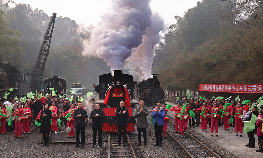 汽笛长鸣,蒸汽萦绕。锣鼓喧天,彩旗飘舞。2017年12月27日,嘉阳小火车内燃机头投运仪式在嘉阳•桫椤湖旅游景区芭石铁路蜜蜂岩站顺利举行。川投峨旅董事长方俊贤、总经理杜勤共同为新投入运行的内燃蒸汽机头揭幕。