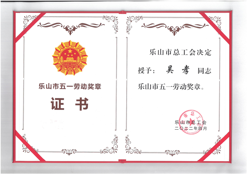 为庆祝“五一”国际劳动节,大力弘扬新时代劳模精神、劳动精神、工匠精神,激励广大职工投身实践、创新创造、建功立业,2022年4月,乐山市总工会组织开展了推荐评选乐山市“五一劳动奖”评选活动,集中表扬了一批在乐山市经济建设主战场和疫情防控主战线等领域中做出突出贡献的先进集体和个人,充分发挥工人阶级的主力军作用,以实际行动迎接党的二十大和省第十二次党代会胜利召开。通过组织推选、自下而上、优中选优、层层推荐的方式,川投峨铁公司节材二厂吴孝同志被乐山市总工会授予“五一劳动奖章”荣誉称号。