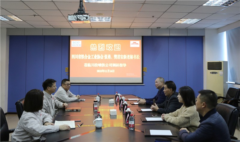 11月14日,四川省铁合金工业协会现任秘书长张勇、前任秘书长樊君安一行4人赴川投峨铁公司调研指导工作,公司党委书记、董事长唐华应,党委副书记、总经理陈新龙,党委委员、总会计师方玲参加会议。