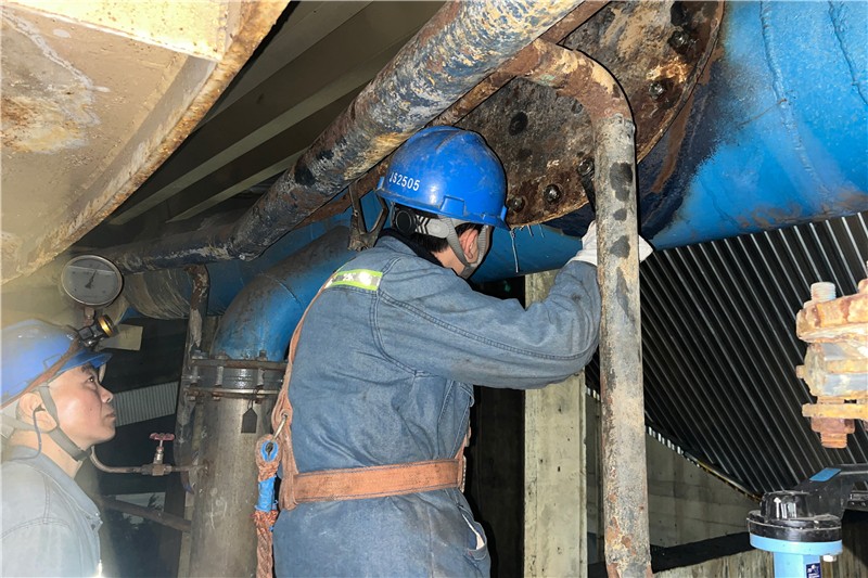 近日,公司各部门认真分析、密切配合完成了1、2号机组脱硫一级吸收塔氧化风管的清垢工作。