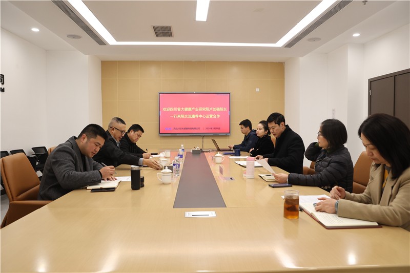 1月11日,四川省大健康产业研究院院长卢加强、川药投资集团诚隆药业公司总经理欧平、四川众智图腾科技有限公司董事长袁文超一行到我司调研交流西昌康养中心运营合作事宜,公司党委副书记、副总经理、医院院长金鸿,公司党委委员、副总经理蒲军,财务总监朱彦及相关人员陪同。