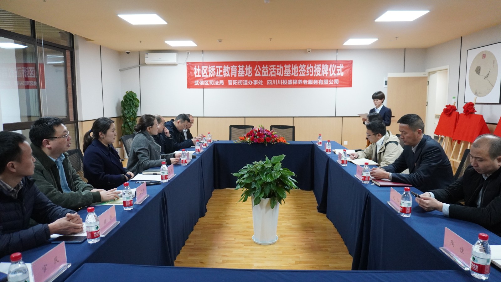 3月12日,川投盛榉公司与武侯区司法局、晋阳街道办事处举行社区矫正教育基地(公益活动基地)签约授牌仪式。武侯区司法局党组书记张竹,晋阳街道办事处党工委书记龚婧,川投盛榉公司党支部书记、执行董事、总经理杨飞出席仪式。