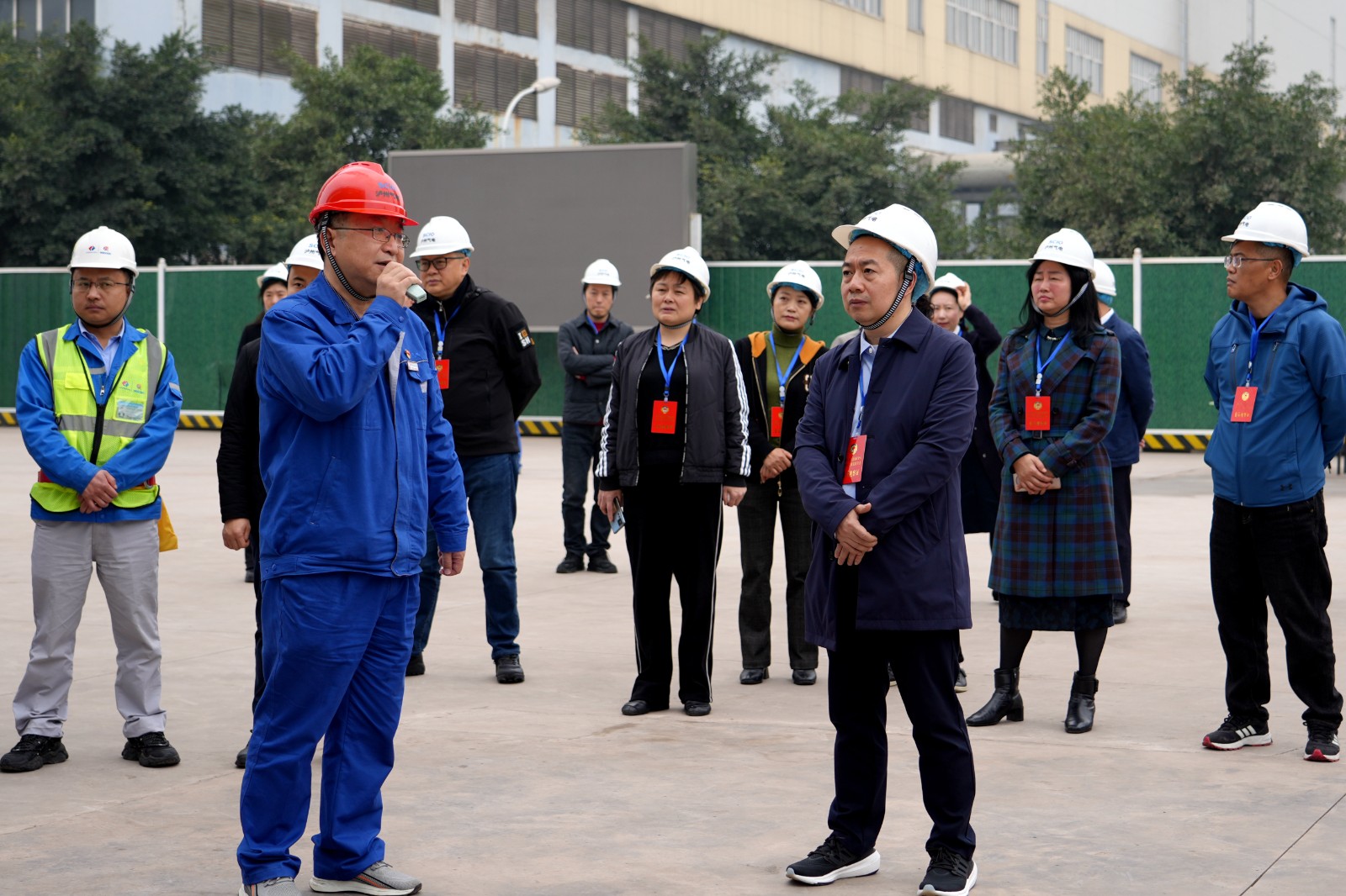 杨雷一行实地查看了川投泸州天然气发电项目施工现场,详细了解了项目建设规划,听取了泸州气电副总经理、工会主席李明尧关于川投泸州天然气发电项目工程建设进度、配套工程推进、主机设备供货等工作情况的汇报。