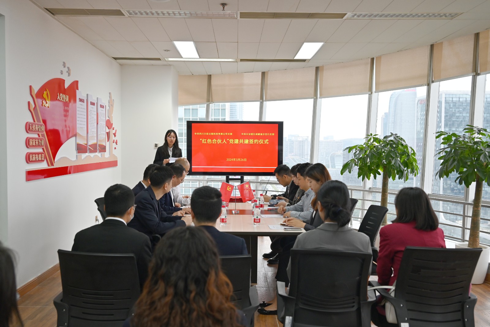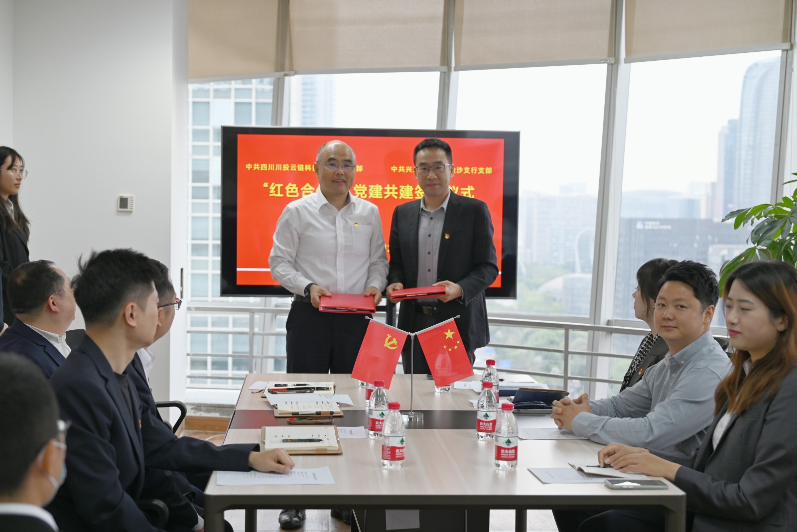 3月26日,川投信产所属川投云链党支部与兴业银行成都金沙支行党支部举行“红色合伙人”党建共建签约仪式及座谈交流。