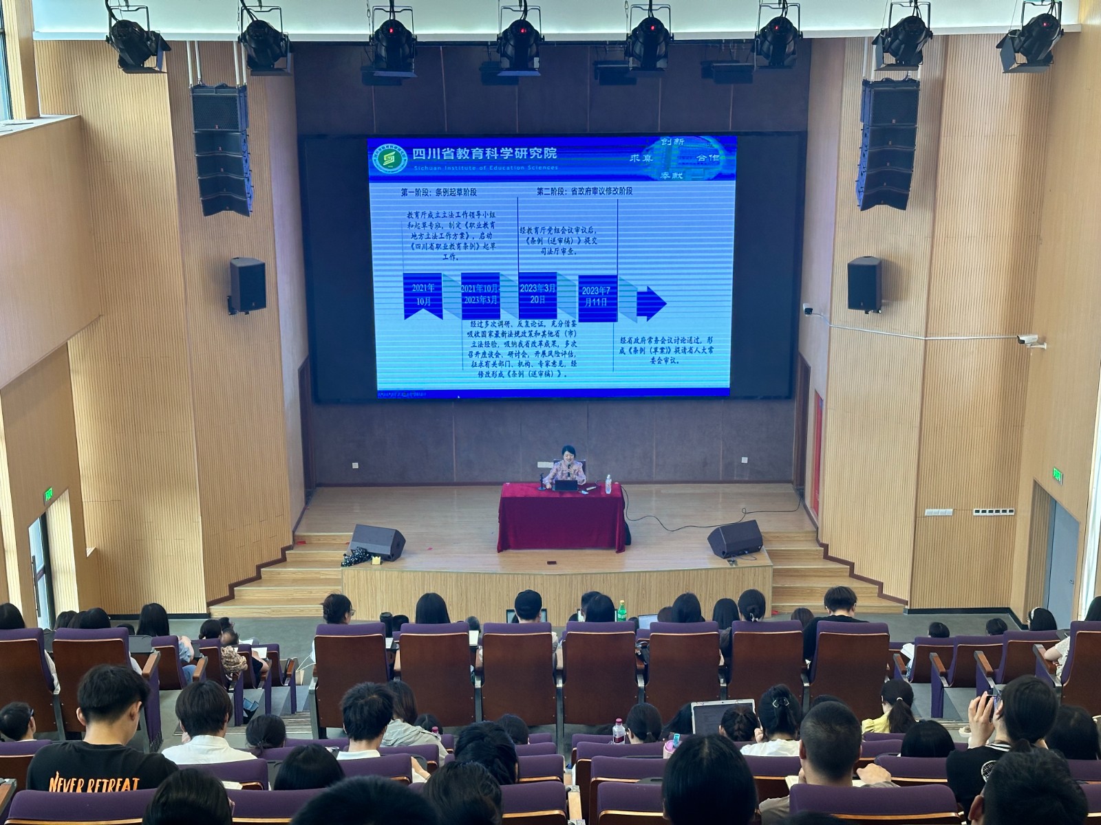 为认真贯彻落实《四川省职业教育条例》精神,努力推进学院教育改革发展,全面提高技术技能人才培养质量,提升现代化办学水平,根据“学习规范提升年”活动整体安排,5月21日,学院邀请四川省教育科学研究院职业教育与终身教育研究所所长屈璐博士作四川省职业教育条例宣贯主题讲座,学院在家领导班子成员出席,全院教职员工参加。
