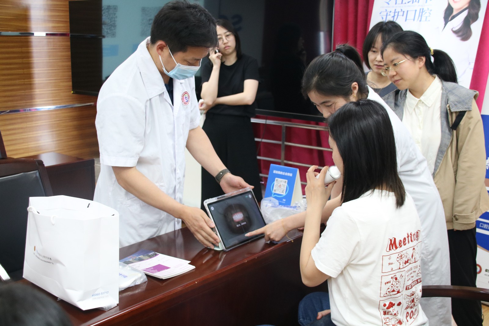 活动上,四川口腔医院全科、黏膜科主任何鹏飞带来了一场生动的口腔健康知识讲座,针对口腔构造、常见疾病成因与预防、以及定期口腔检查的重要性进行了全面的讲解,有效增强了员工的自我保健意识。讲座结束后,四川口腔医院医疗团队利用先进的人工智能口腔扫描技术,为每位参与员工提供了细致的一对一口腔检查,并根据检查结果出具个性化报告。医务人员现场解读报告,提出针对性的日常护理指导及预防、治疗方案,实现了口腔健康管理的精准化。