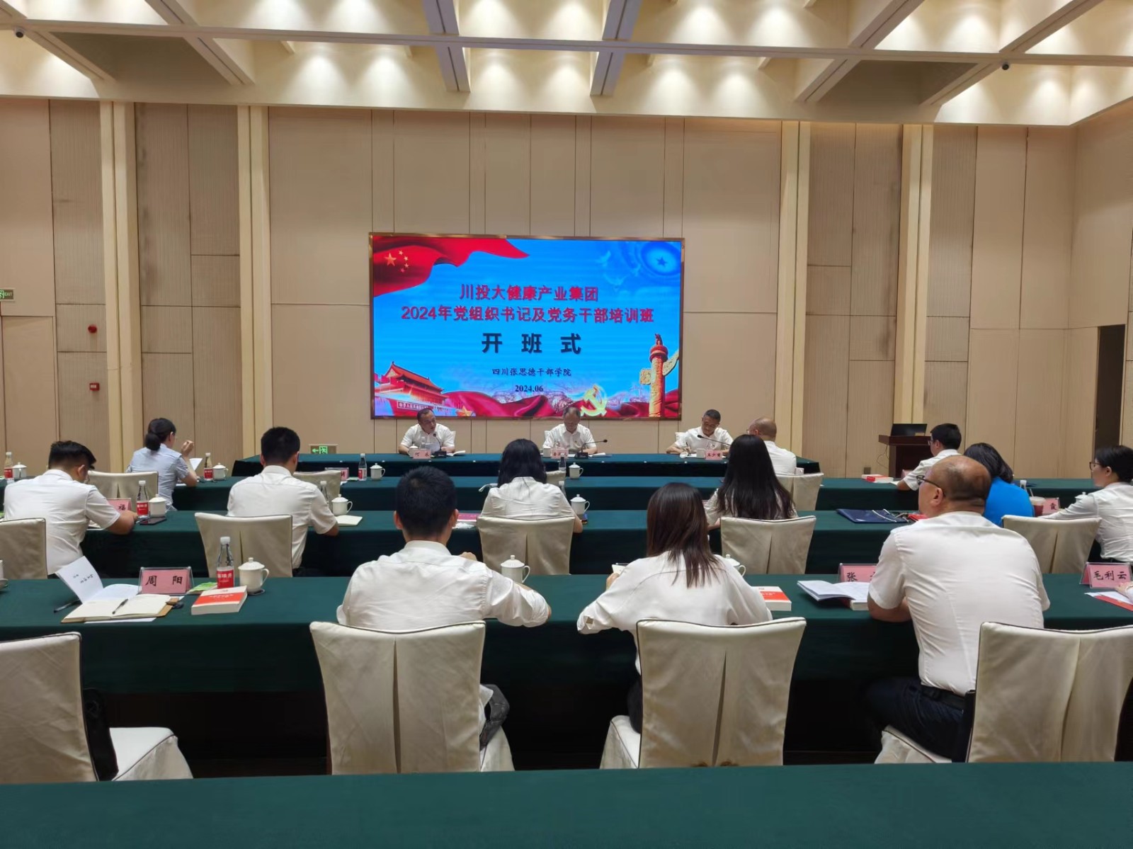 为坚持和加强党对国有企业的全面领导,进一步提升基层党组织书记及党务干部队伍工作能力水平,推动党建经营深度融合,推动企业高质量发展,6月26日下午,川投大健康产业集团2024年党组织书记及党务干部培训班在四川张思德干部学院开班。川投大健康产业集团党委书记、董事长、总经理鲁洪斌出席开班式并做开班讲话,党委副书记、职工董事、工会主席王少甫主持开班式,仪陇宗旨教育研究中心副主任、四川张思德干部学院教务部主任、工会主席何东致欢迎辞并为培训班授班旗。