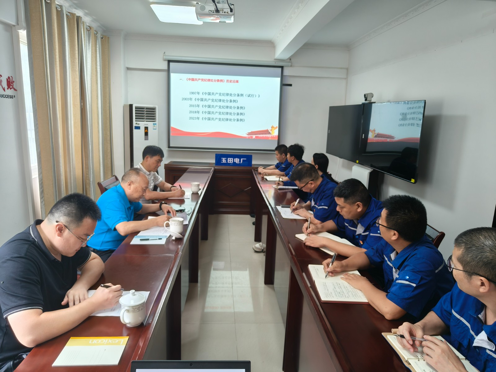 蔡承德从历史沿革、修订概要和条文解读三个方面对新修订的《中国共产党纪律处分条例》进行细致解读。结合近期查处的国企违纪违法典型案例,蔡承德要求,玉田电厂全体党员要牢固树立党规党纪意识,扛起政治责任,充分发挥党员先锋模范作用;要自觉修筑自律防线、设立笃行底线,常怀律己之心,常思贪欲之害;要严守工作纪律,严抓安全生产,加大扭亏治亏力度,为公司的发展贡献力量。